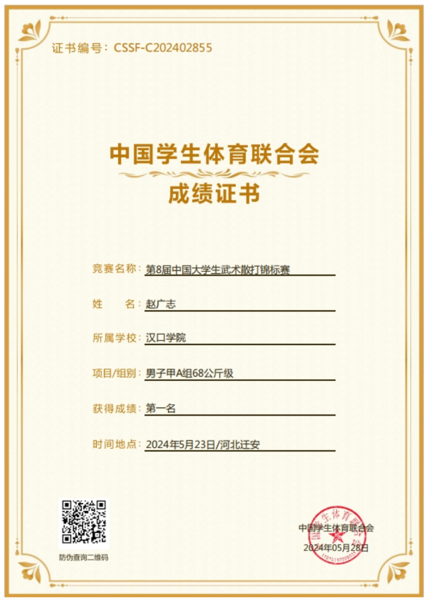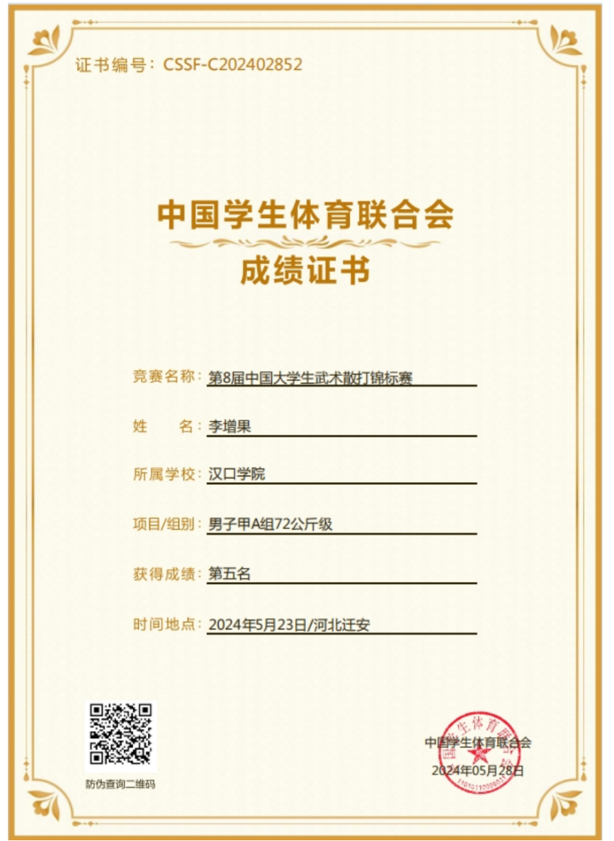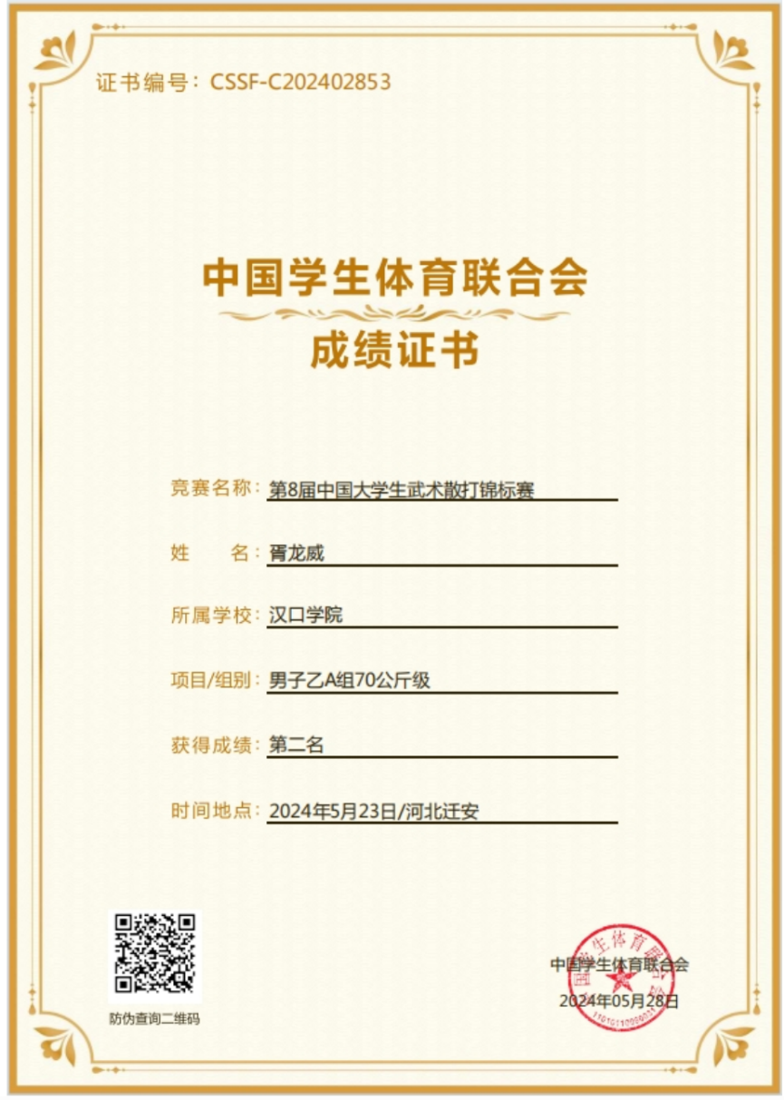 中国大学生武术散打锦标赛荣获国赛一等奖、二等奖