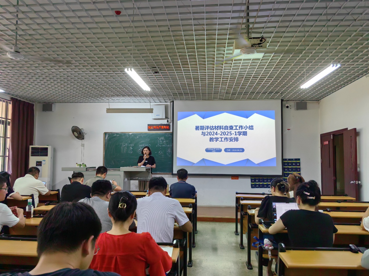 会议伊始,副院长杨莎就暑期评估材料自查工作进行了总结,并对2024-2025学年第一学期的教学工作做出详细安排,并指出,暑期评估材料自查是保障教学质量的重要环节,各部门积极配合,顺利完成了自查任务。针对新学期的教学工作,她强调教学计划的严格执行,特别是对新教师的教学指导与支持工作,同时要求全体教师关注学生学业进展,确保课堂教学质量稳步提升。