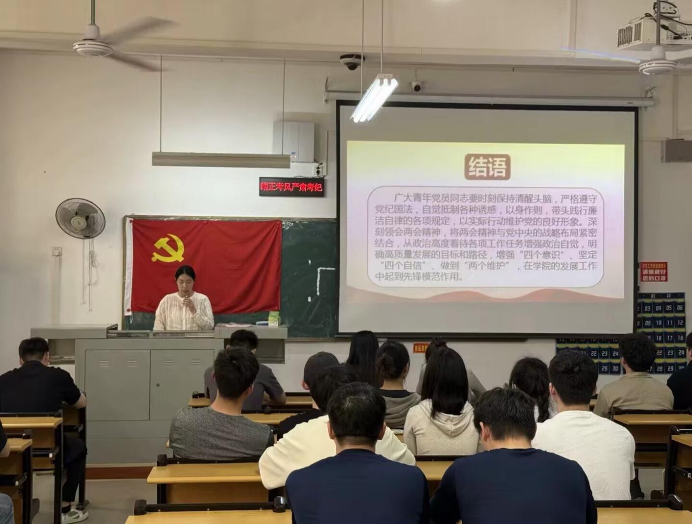 活动在庄严的奏唱国歌中开始,随后完成了通报党费缴纳情况、重温入党誓词等规定动作。本次活动的核心内容是进行专题学习,邓畅同志带领全体党员深入学习了全国两会精神、党的作风建设重要论述、中央八项规定精神以及全省教育大会会议精神,强调党员需深刻领会其内涵,并将理论转化为实际行动,充分发挥先锋模范作用。