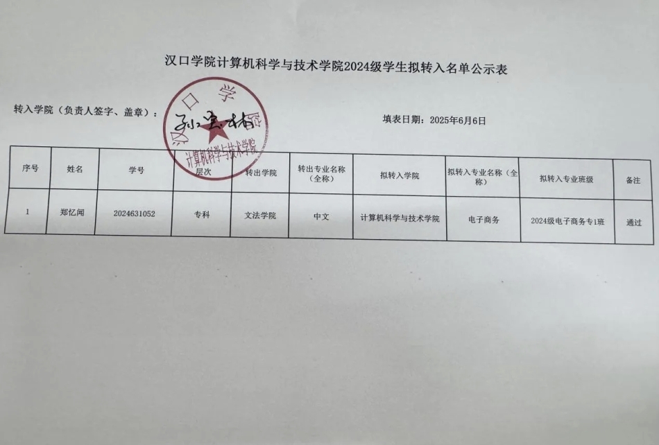 关于2024级学生转专业结果公示