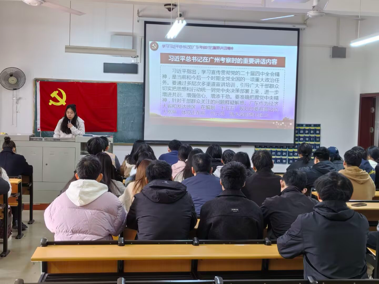 会议在奏唱国歌中开始,随后邓畅带领党员重温入党誓词,并通报了党费缴纳与到会情况。活动中,邓畅领学了《习近平总书记在广州考察时的重要讲话内容》,强调要严守纪律、务实干事,做全面从严治党的“践行者”。她还带领学习了“十五五”规划建议内容,鼓励党员在学业科研中求真务实、团结协作,将规划蓝图转化为青春实绩。
